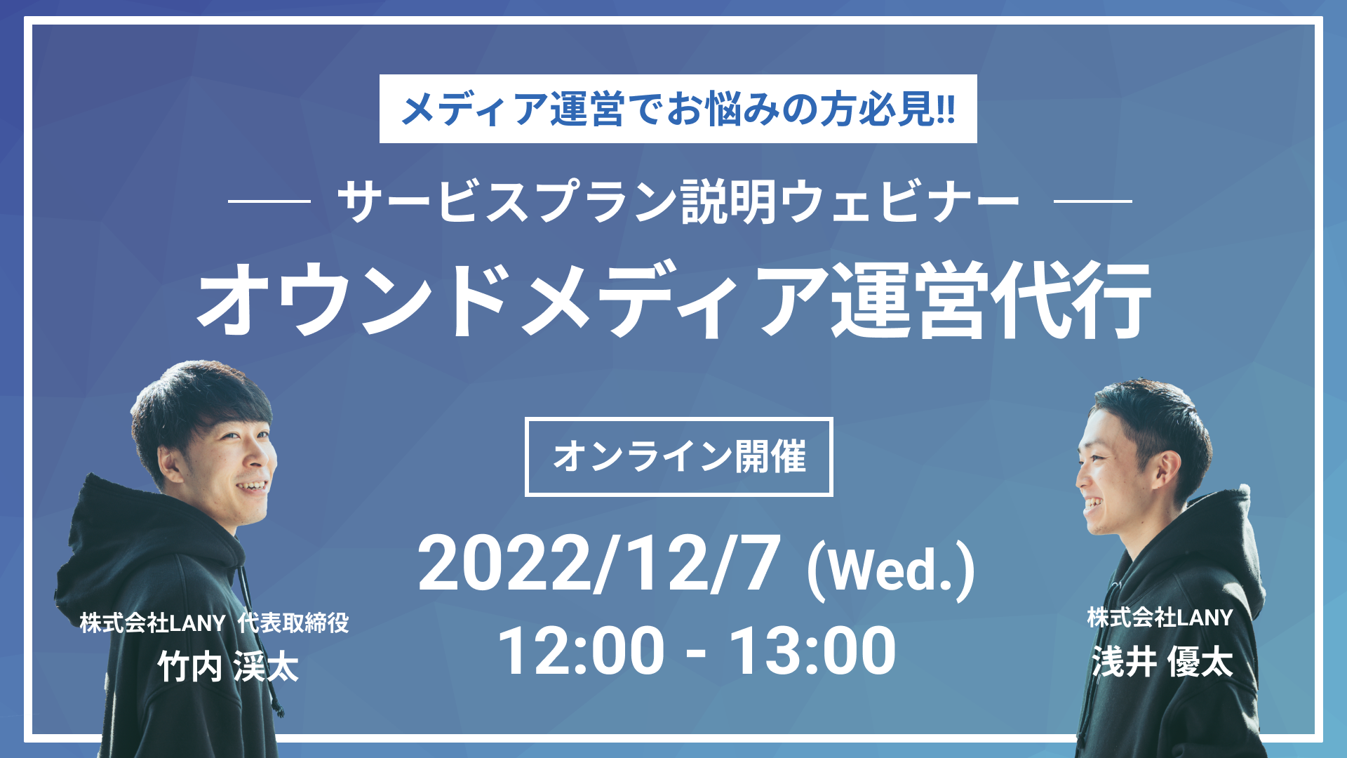 LANY オウンドメディア運営代行サービス説明会を行うウェビナーを12/7(水)に開催