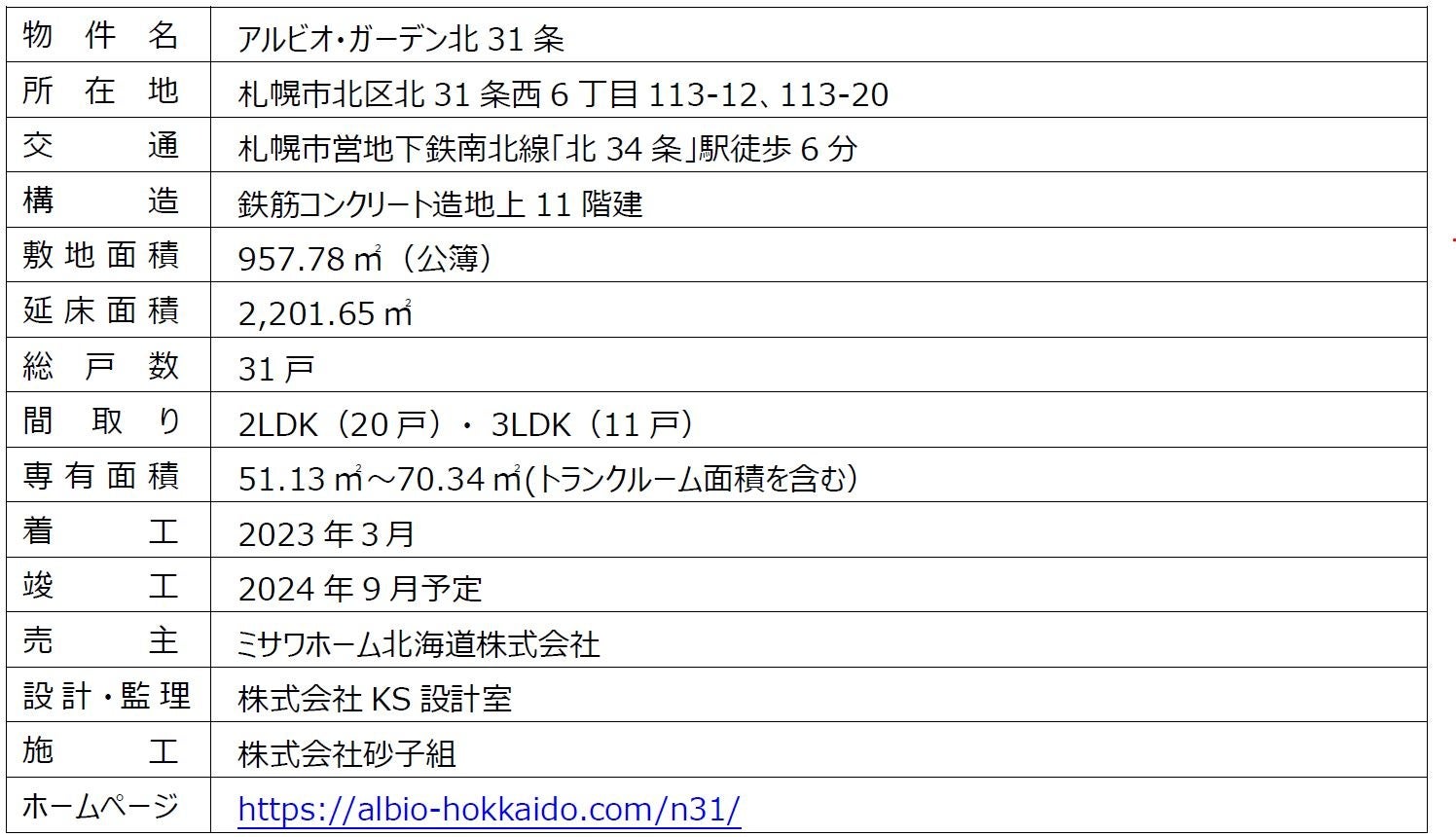 ミサワホームグループのミサワホーム北海道株式会社(代表取締役社長執行役員 三村勇司)が、札幌市北区で建設を進めているZEH-M Oriented仕様の分譲マンション「アルビオ・ガーデン北31条」について、1月14日(日)より販売を開始します。