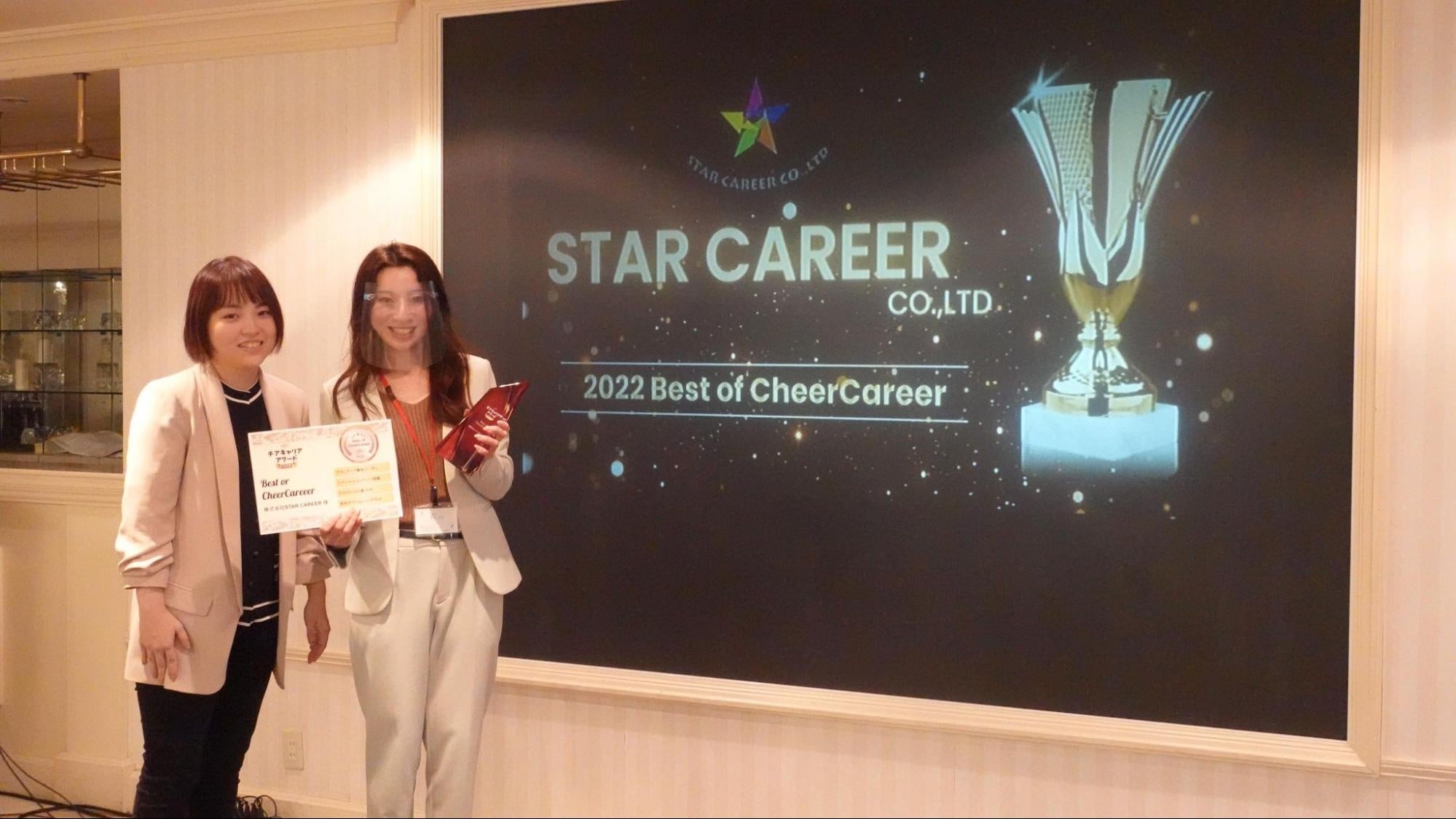 22年度新卒チアキャリア経由で入社したRookieさん。同期の中でもいち早くインターンに参加し、入社後2、3 か月目はグループ会社の事業部内で商材獲得1位の実績を確立。店舗異動後も前店舗の常連のお客様がわざわざRookieさんに会いに来たりと、STAR CAREER社の文化である「愛される人財」を体現されています。2022年7月に行われた四半期報告会では社内MVPを受賞されたことなどが高く評価され、Best Rookie賞 最優秀賞を受賞。