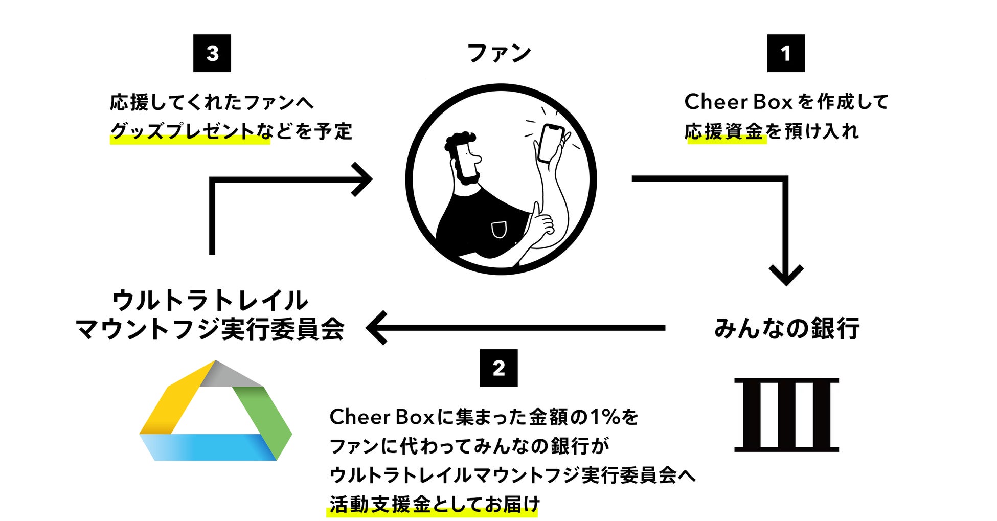 株式会社みんなの銀行(取締役頭取 永吉 健一、以下「みんなの銀行」)は、国内最高峰のトレイルランニング大会「ULTRA-TRAIL Mt.FUJI 2023(以下「MF2023」) 」を応援するための「MF2023 Cheer Box/Cheerコード」の取組みを開始します。また、同大会の開催を記念して、ウルトラトレイルマウントフジ実行委員会とのタイアップキャンペーンを実施します。
