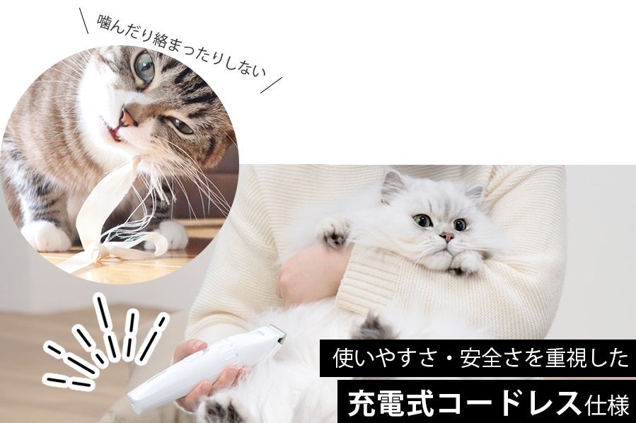 人だけでなく、ペット目線にもこだわった充電式のセルフトリミング用バリカン。