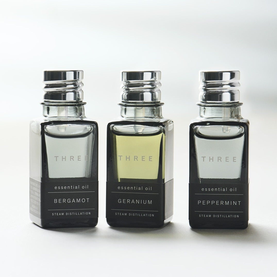 国産精油を中心にTHREEが厳選した30種類のエッセンシャルオイル。熊本県南阿蘇にあるTHREE 自社農園で育てたゼラニウムの精油をはじめ、THREEのプロダクトに配合されている高品質なオリジナル国産精油などをラインナップ。新たに佐賀県のTHREE自社農園で育てたティーツリー、ロザリーナ、コモンタイムの精油も加わり、国産精油を取り扱うショップとしては国内最大級の品揃えです。産地や抽出方法などによって異なる、繊細な香りの違いをお楽しみください。