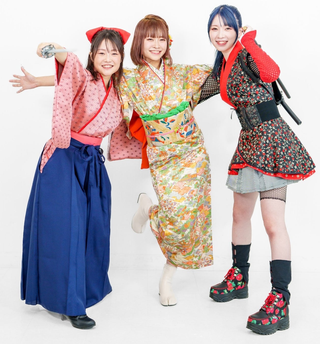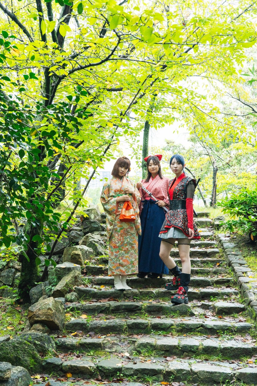 「鯉城小町」は、「江戸時代の広島城下で生活する武家の子女」をコンセプトにした3人組ユニットで、「忍者」「剣士」「町娘」の衣装で活動します。