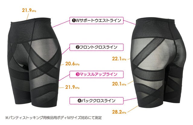 上記①~④の各部の着圧が、日常動作をトレーニングに変えてくれる重要な役割を果たします。