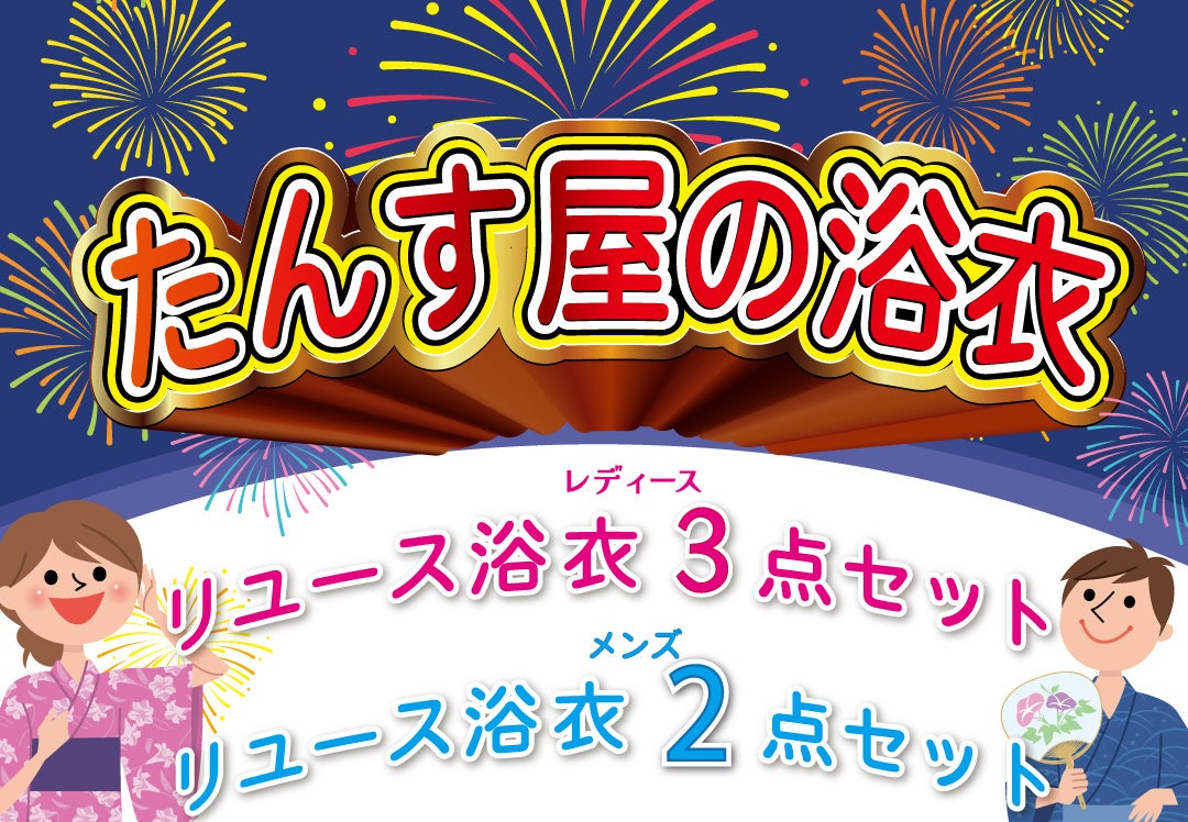 たんす屋オンラインストアでは、7月末までリユース浴衣のセット(レディース3点セット、メンズ2点セット)を数量限定、お得な価格で販売中!