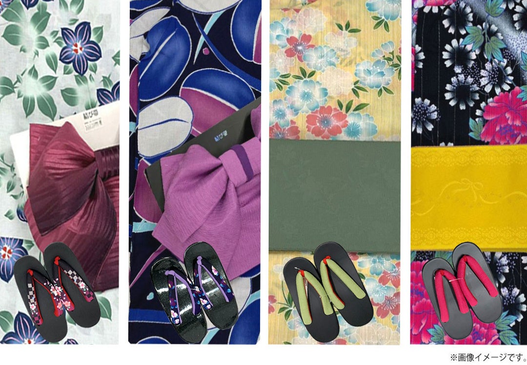 リユース浴衣、新品作り帯、新品下駄の3点セット。