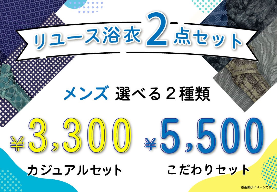 気軽に着たいカジュアルセット3,300円と、高級感のある質感の浴衣のみを厳選したこだわりセット5,500円の2種類をご用意しました。