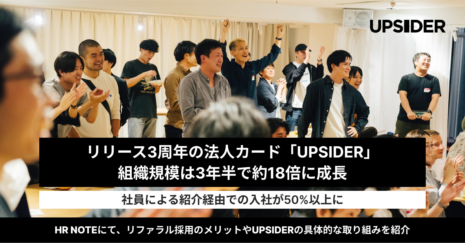 リリース3周年の法人カード「UPSIDER」、組織規模は3年半で約18倍に成長 — 社員による紹介経由での入社が50%以上に