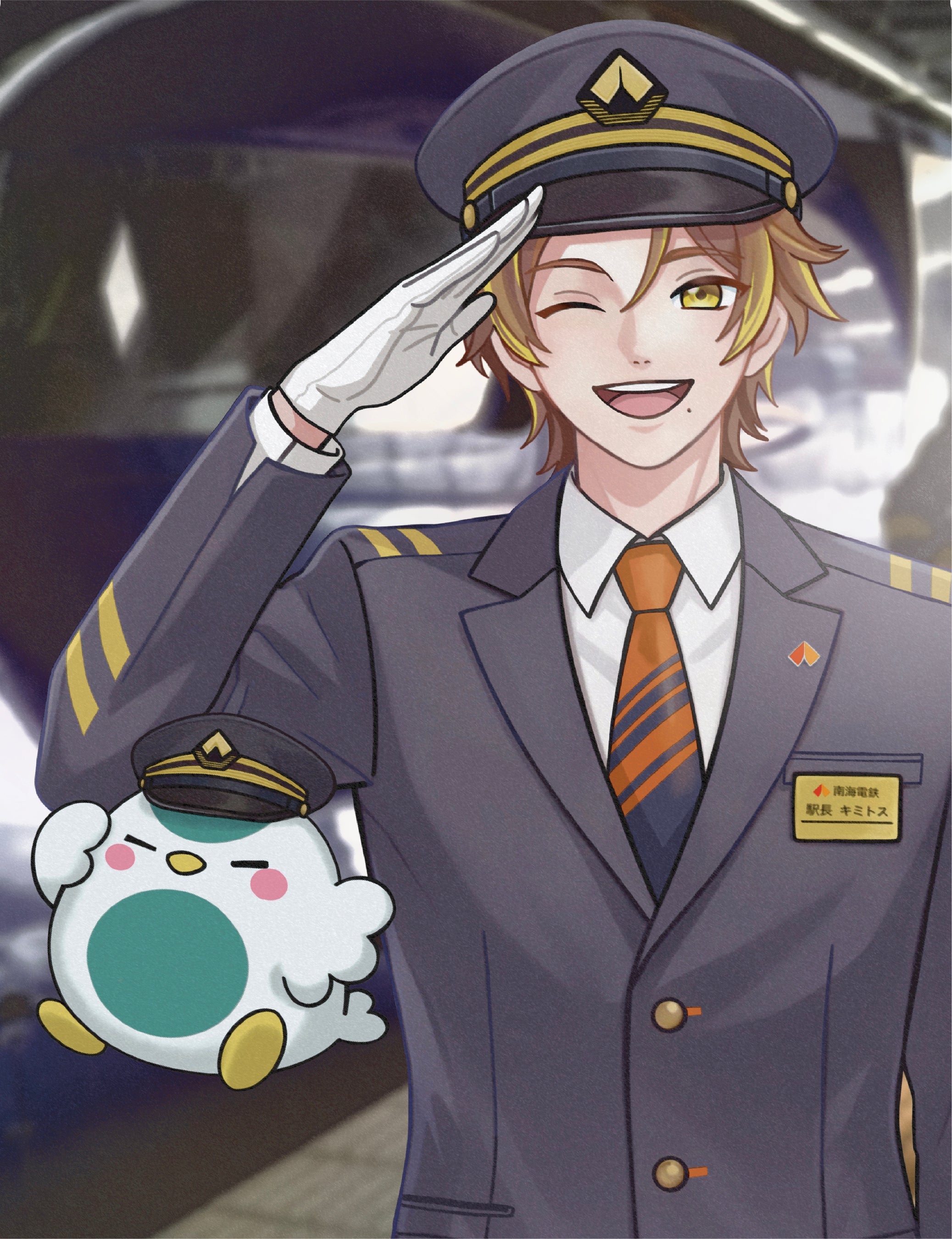この度、南海なんば特別駅長に就任しました、ENTER FORCE.36 所属のキミトスです!こんな素敵な機会をいただけて本当に嬉しいです。ありがとうございます!「世界一楽しむ」をモットーに活動しているので、特別駅長として“なんば”の皆さんと一緒に笑顔になれればなと思います!
