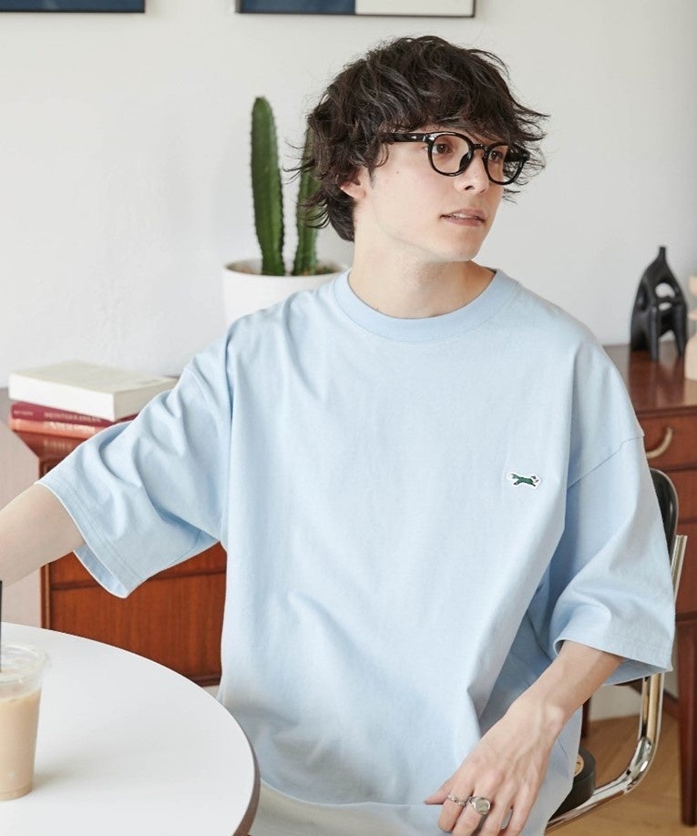 こちらも胸元のワンポイントデザインが特徴の、洗練されたシンプルな1枚となっています。大き目のサイズ感なので、ワイドパンツなどと合わせて全体的にルーズなシルエットで着こなすのも◎