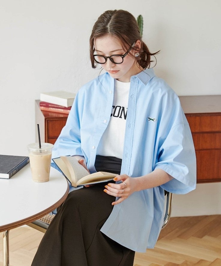 胸元に施されたキツネのワンポイントデザインが、アクセントとなったアイテム。ボタンを閉めて1枚で着るのはもちろん、インナーを合わせてレイヤードコーデをお楽しみいただくのもおすすめです!