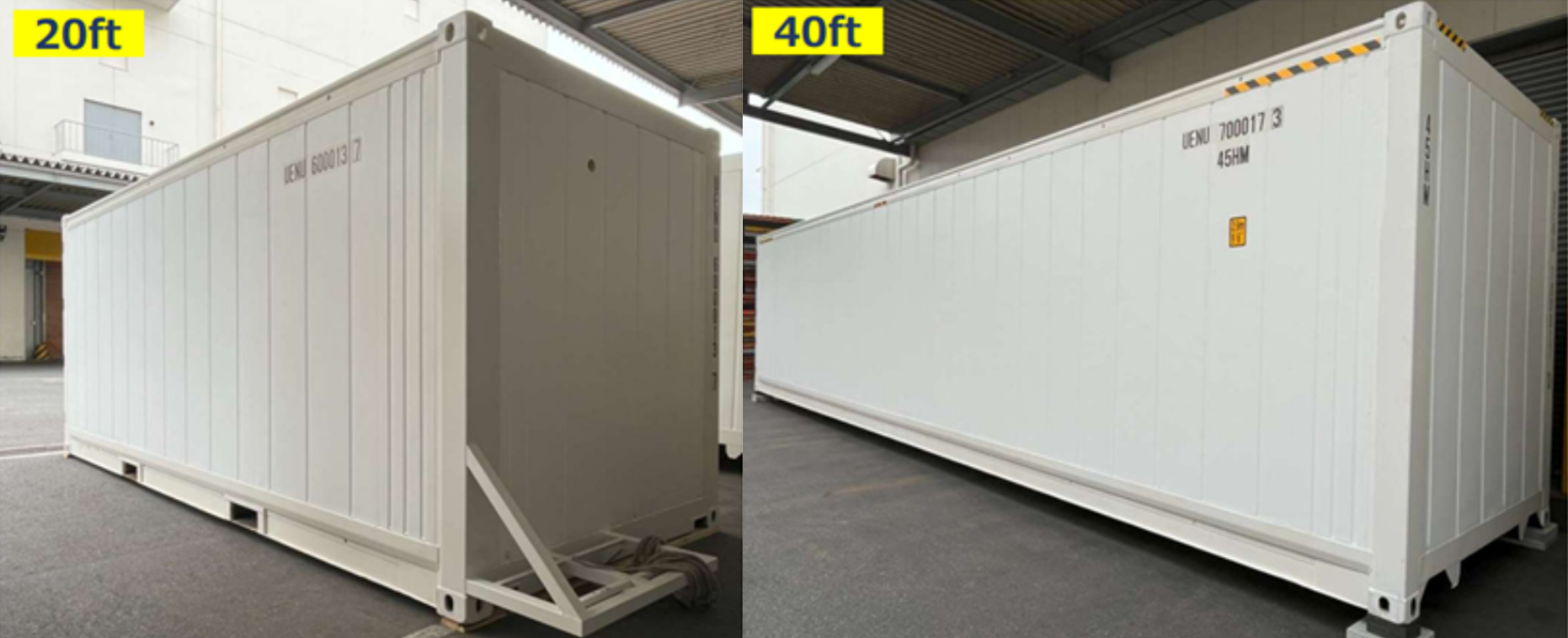 SPACECOOLを施工したLiBコンテナ(左:20ftコンテナ、右:40ftコンテナ)
