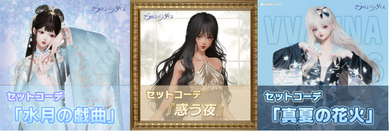 本章解放後、ファッションスタジオに星5セット『水月の戯曲』、星4セット『惑う夜』、『真夏の花火』が追加されます。早速材料を集めて制作しましょう!