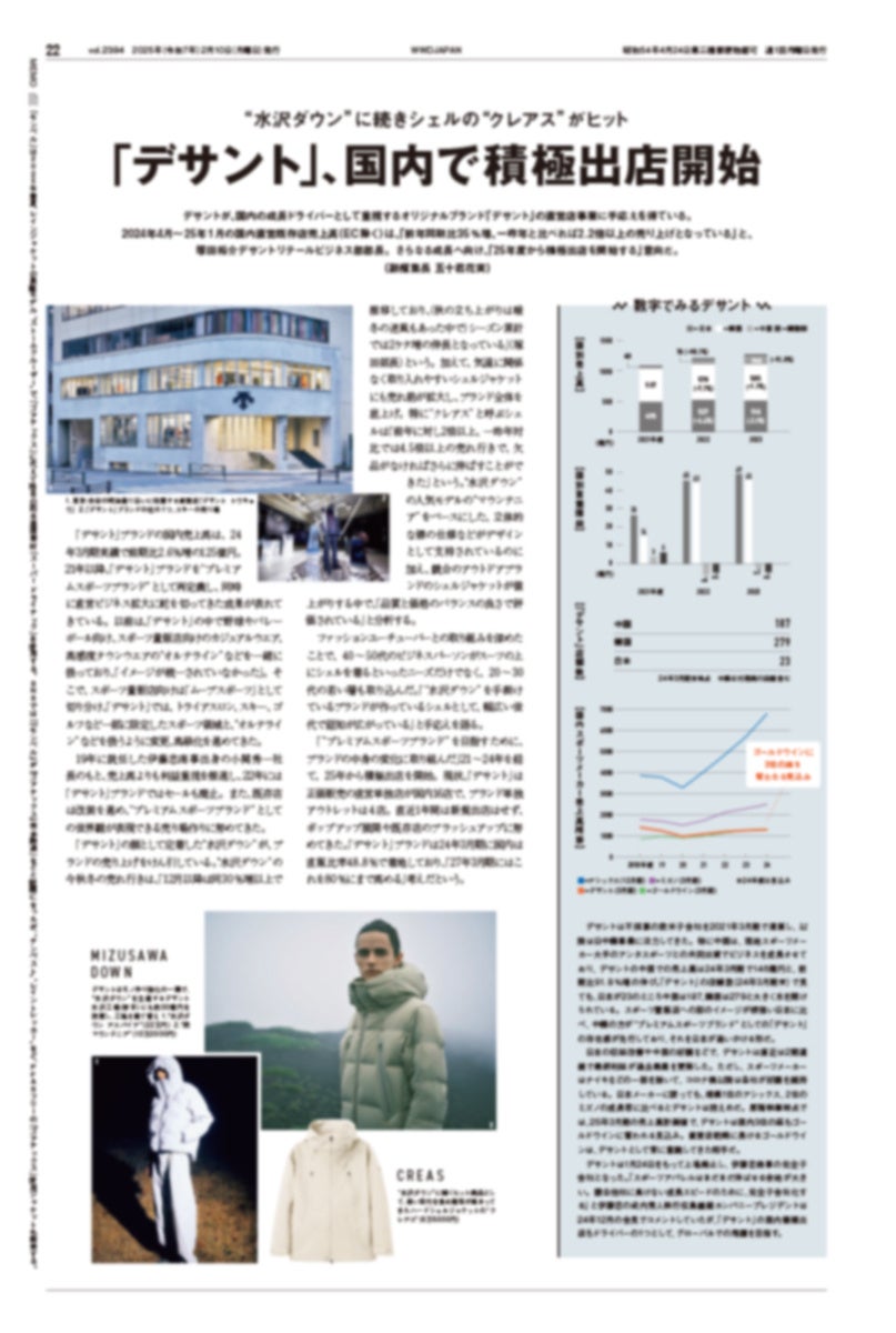・“水沢ダウン”に続きシェルの“クレアス”がヒット 「デサント」、国内で積極出店開始