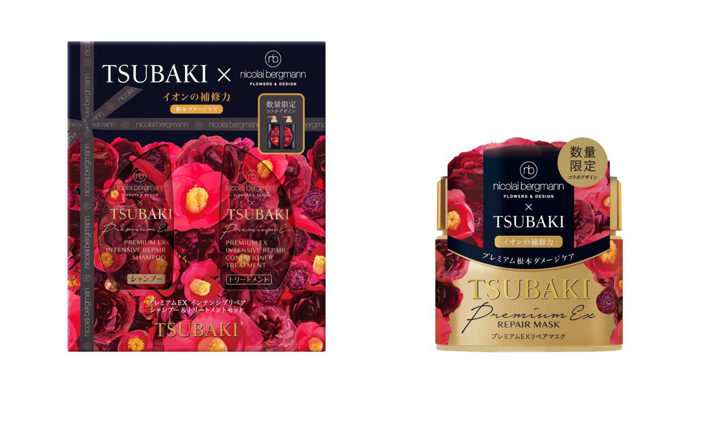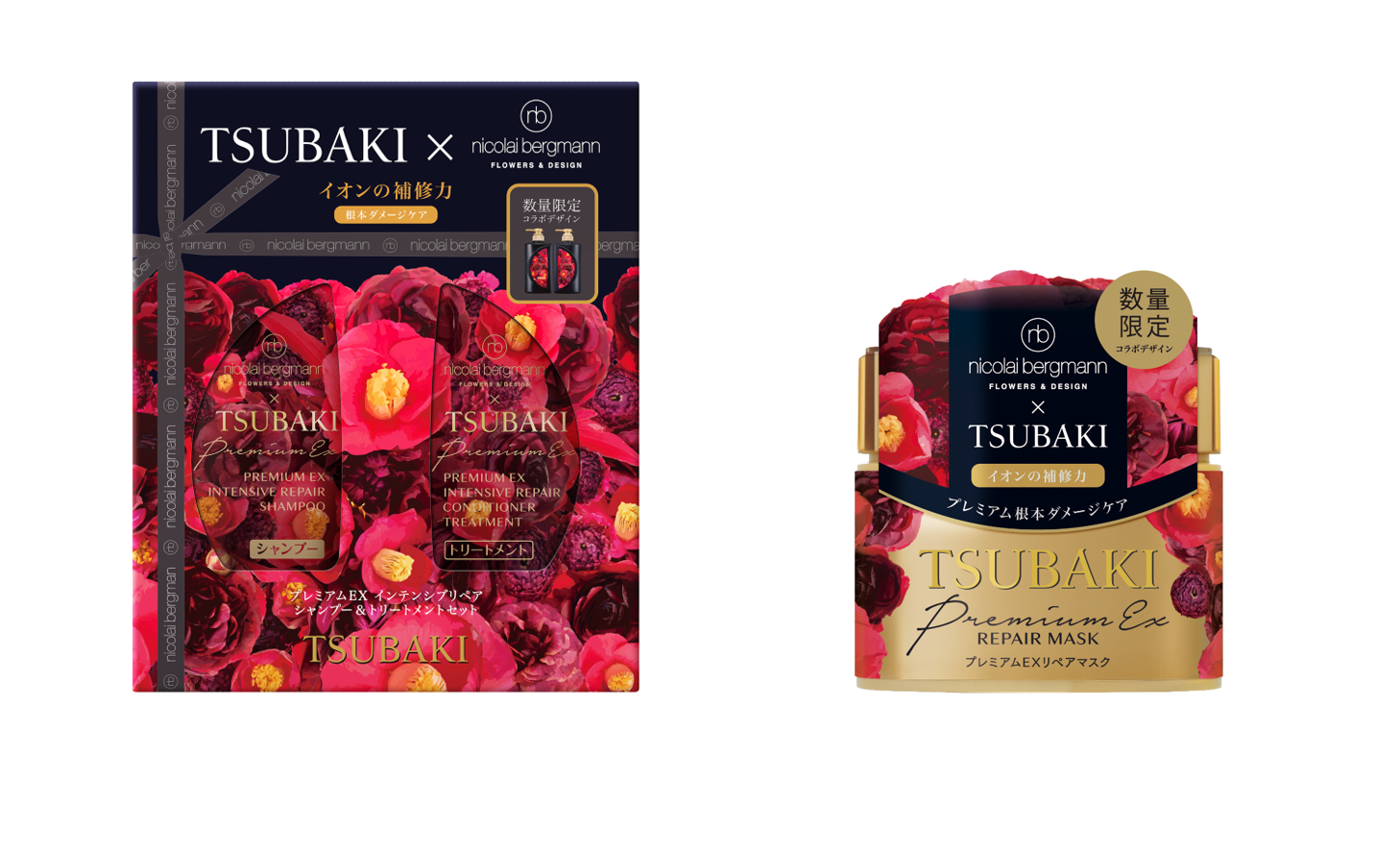 (左)TSUBAKI プレミアムEX インテンシブリペア シャンプー&トリートメントセット ニコライバーグマン リミティッドエディション 2023
