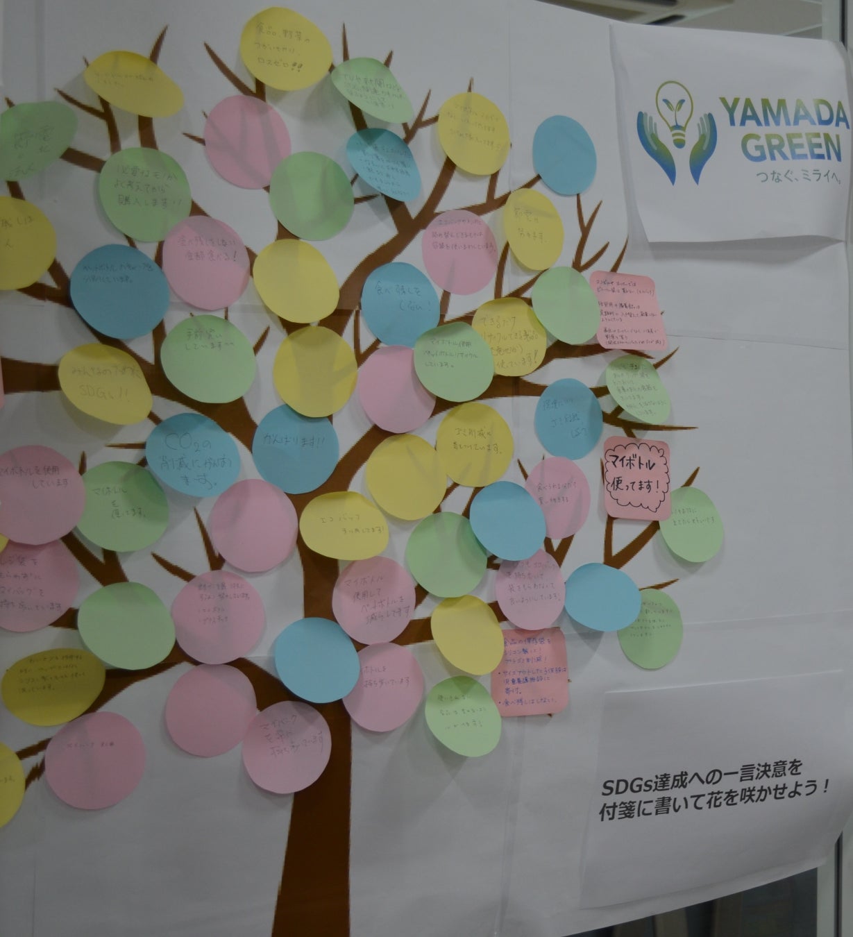 「食べ残しをしない」「ゴミを削減する」等、従業員それぞれのSDGsへの取り組みや決意表明を記入しました。