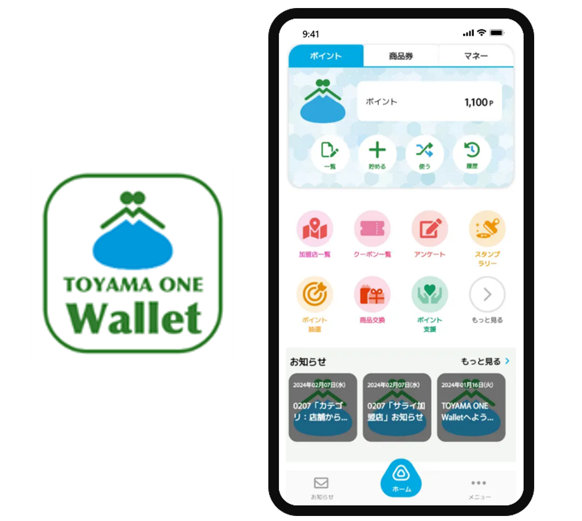富山県内で発行されるさまざまなデジタル地域通貨や商品券、地域ポイントを管理、決済することができます。