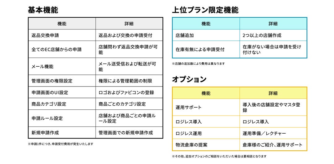 一方で、ユーザーにとってはわかりやすい申請フローと透明性のある進行管理により、安心して返品・交換を進めることができ、事業者・運営支援会社とユーザー、双方にとってストレスのないスムーズな返品交換体験を提供します。
