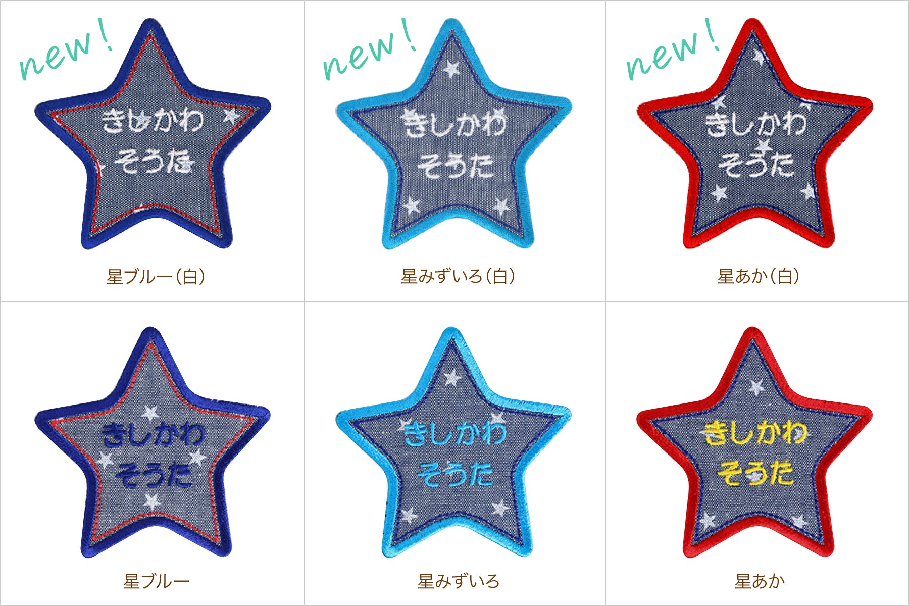 シールDEネームのお名前ワッペンは、イラスト付きやおはな型などバリエーション豊か。その中のひとつ「ほしシリーズ」のパターン生地シリーズに、ご要望の多かった文字色違いを追加いたしました。