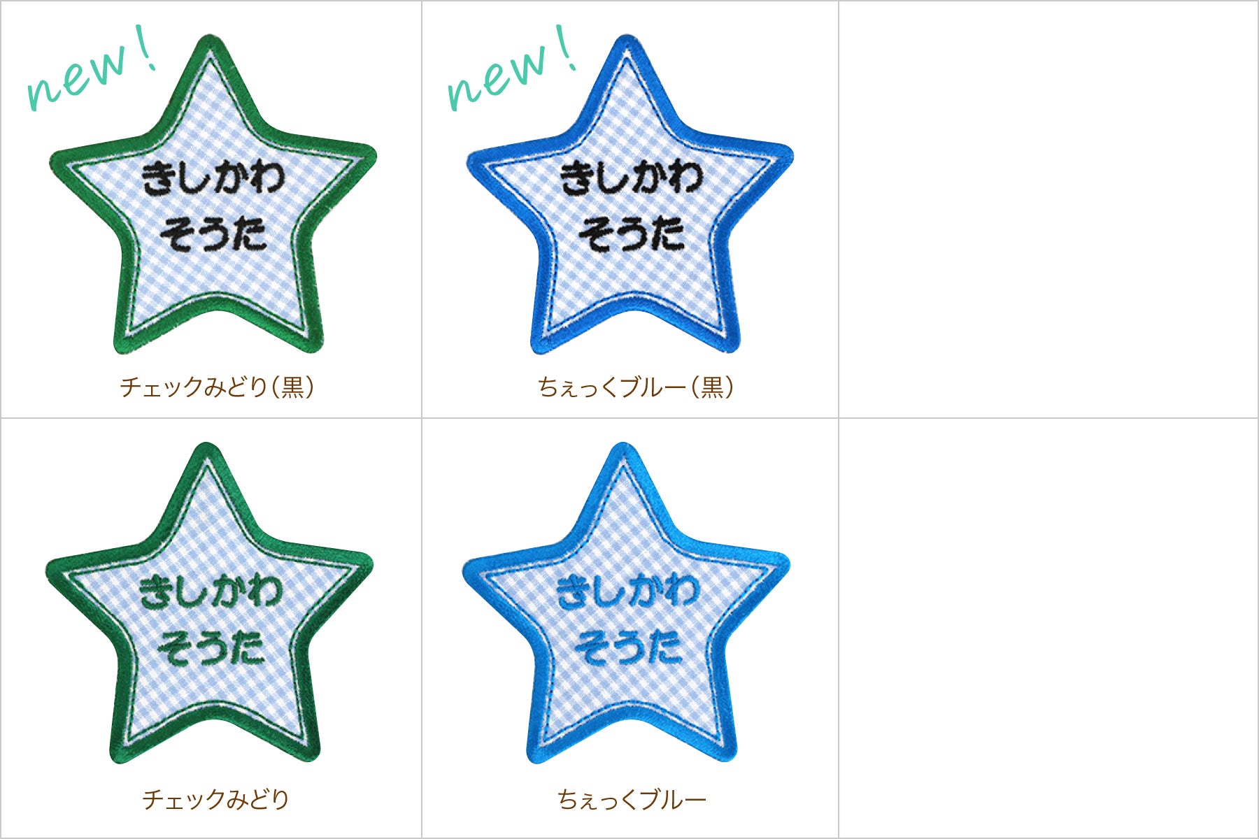 【新デザイン情報】人気の“ほし柄ダンガリー・ブルーチェック”に、それぞれ新しい文字色が登場。