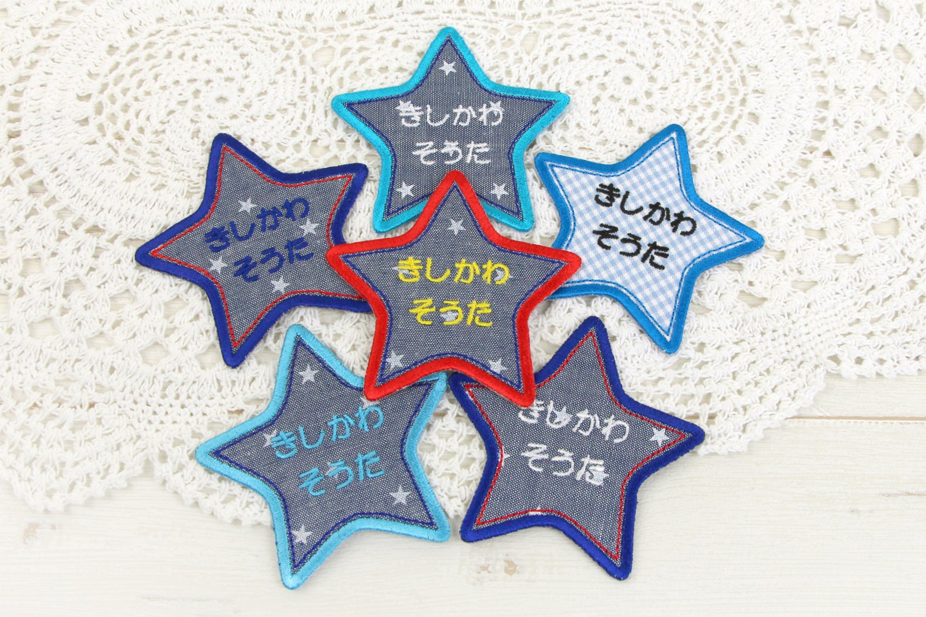 男の子に人気の《お名前ワッペン》に新カラー登場!おしゃれキッズの入園入学準備の名前つけに、ほし柄ダンガリー・ブルーチェックで長く使えるデザイン。