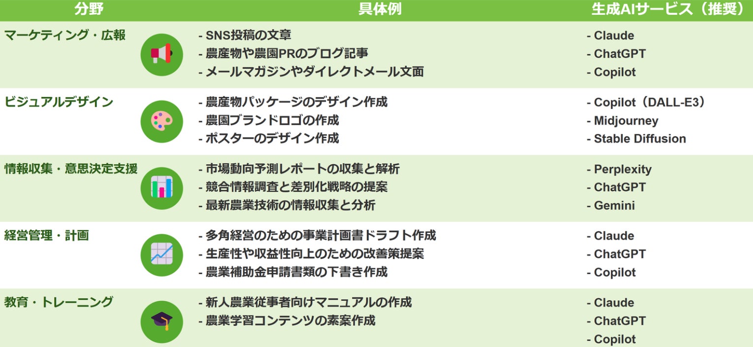近年、生成AIの発展により、ビジネスや個人の作業効率化に大きな注目が集まっています。農業分野においてもその活用が急務となっています。しかし、「そもそも生成AIとは何なのか」「農業において生成AIをどのように活用すればよいのか」といった疑問を持つ方も多いのではないでしょうか。