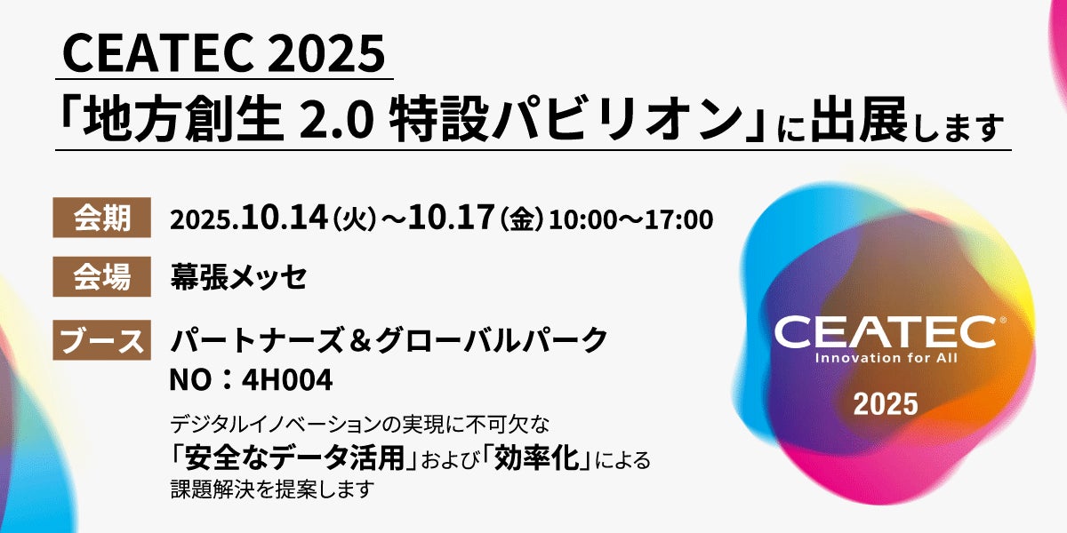 株式会社インサイトテクノロジー(本社所在地:東京都渋谷区、代表取締役社長 CEO:森田 俊哉、以下:インサイトテクノロジー)は、2025年10月14日(火)から17日(金)まで幕張メッセにて開催される「CEATEC 2025」内の「地方創生2.0特設パビリオン」に出展することをお知らせします。