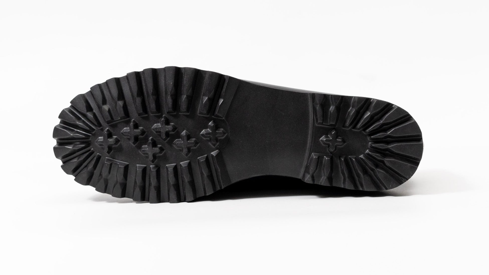 タンクソールとは登山靴やトレッキングシューズなどに採用されている、スタッド形状の突起が高く頑丈な形状のソール。靴底がごつごつと大きく深い溝の意匠となっていることで、グリップ力は高く不安定な足場にも対応。 今回のタンクソールモデルではタウンユースとして軽量な素材を採用。 長時間の歩行に対して疲れにくいように設計されいている。
