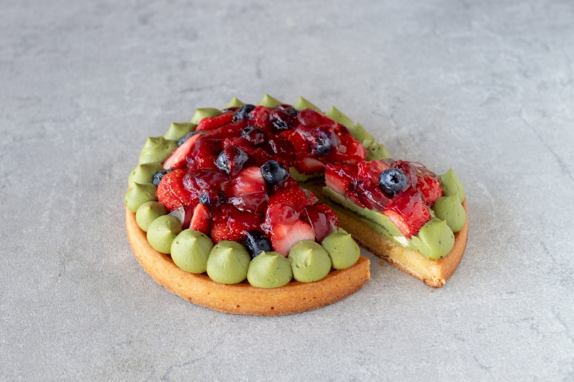香り豊かな抹茶と色鮮やかなミックスベリーを合わせた、彩り美しいタルト。