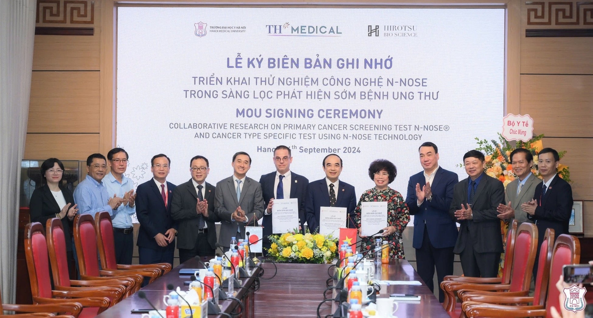 2024年9月26日、株式会社HIROTSUバイオサイエンス(本社:東京都千代田区、代表者:広津崇亮、以下「当社」)は、ハノイ医科大学並びにベトナム国内最大級の乳業メーカーTHグループと、「N-NOSE」を用いたがんスクリーニングの共同研究に関するMOUを締結しました。