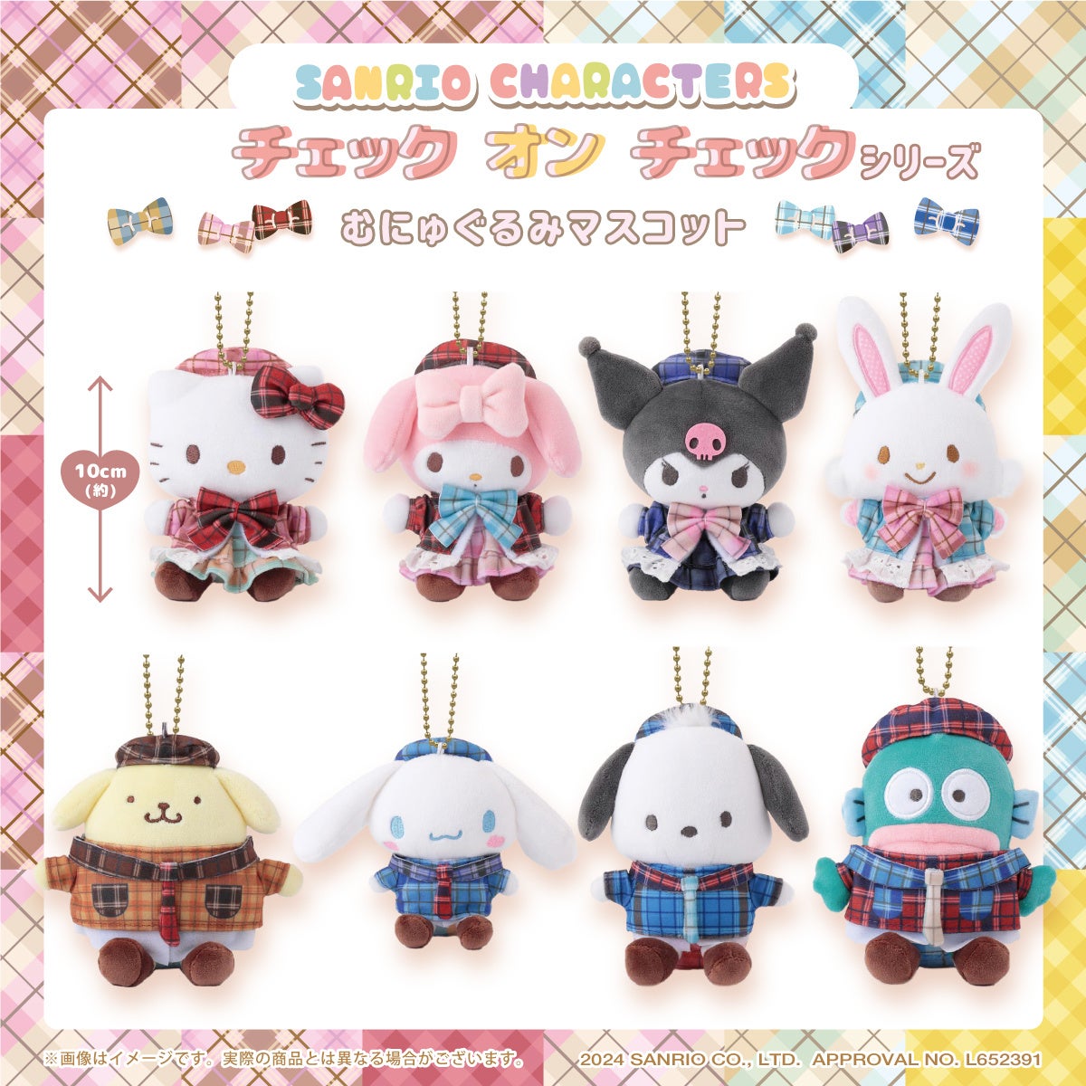チェックの衣装で気分は80年代アイドル♡サンリオキャラクターズより「チェック オン チェックむにゅぐるみマスコット」が10月24日(木)~むにゅぐるみパティオ対象店舗で発売開始!