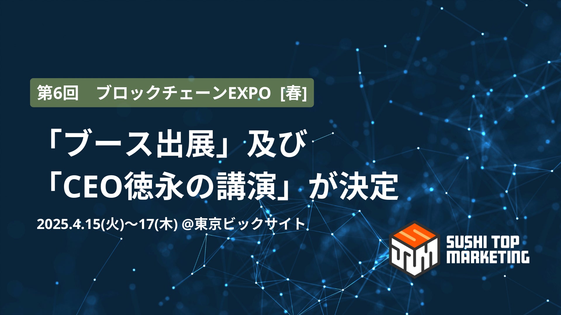 2025年4月15日~17日に東京ビックサイトにて開催される「 第6回 ブロックチェーン EXPO 春」にブース出展及びCEO徳永の講演が決定しました。