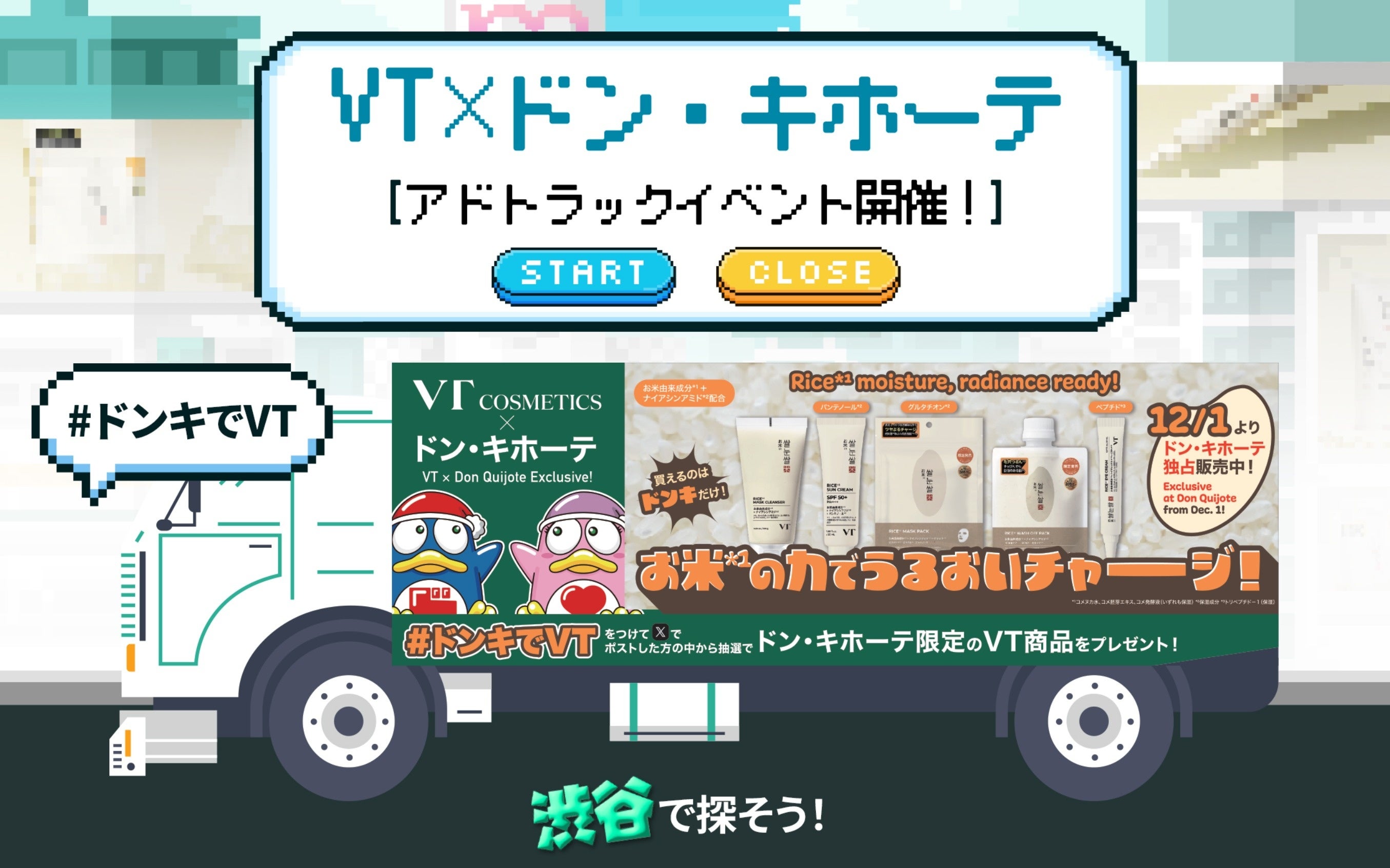 新商品の発売を記念して、VT×ドン・キホーテ スペシャルコラボアドトラックが12月2日(火)~12月15日(月)の期間限定で渋谷を走行!トラックの写真を撮影し、Xにて「#ドンキでVT」をつけて投稿すると、抽選で100名様にドン・キホーテ限定商品を含むVT豪華詰め合わせセットをプレゼント!