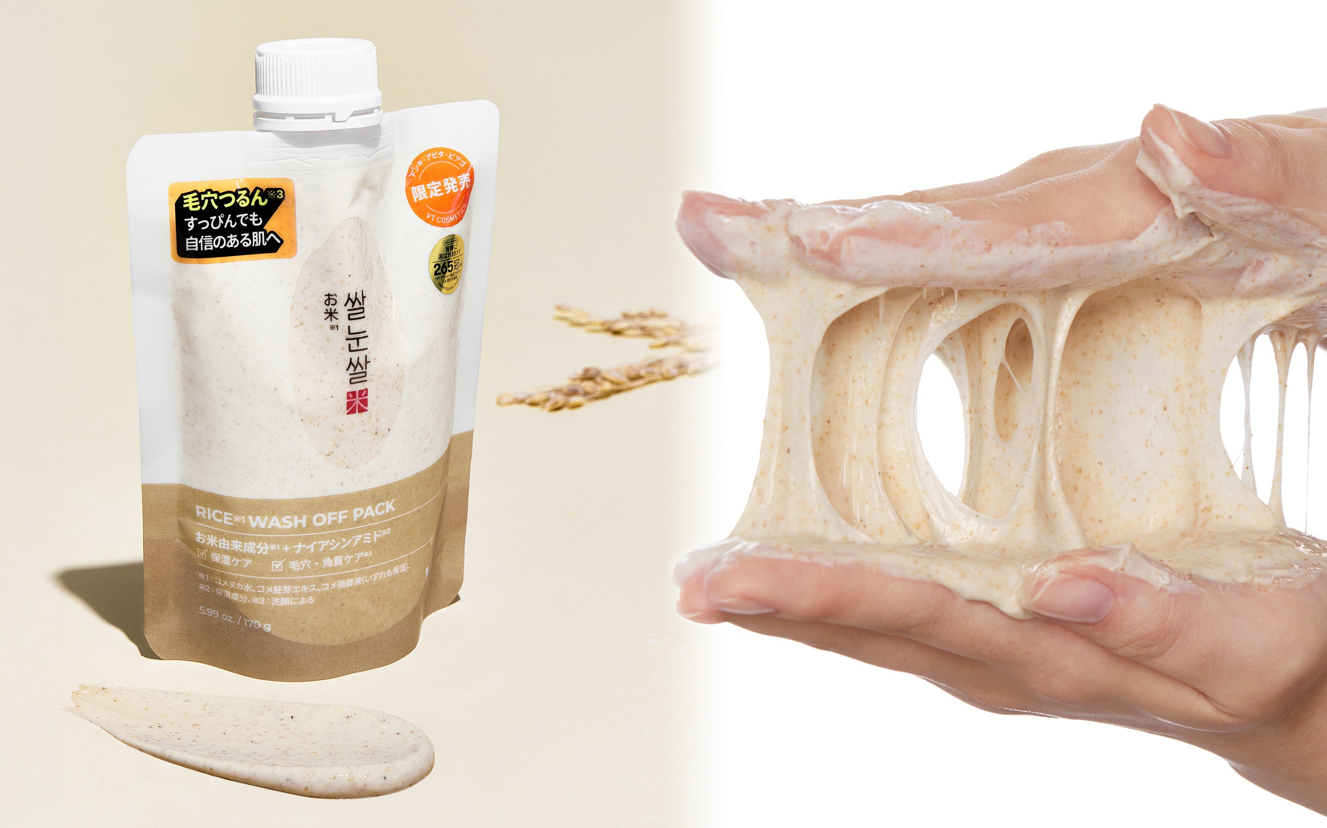メイク落とし+洗顔+パックの3 in 1マスククレンザー。もっちりライスクレイテクスチャーが汚れを吸着し、黒ずみや角質をすっきりオフ。洗うたびに、つるんとした白玉肌※3へ。