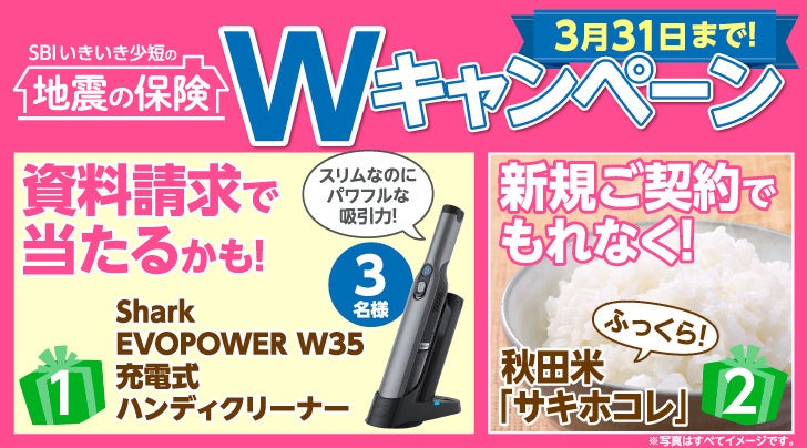 【SBIいきいき少短】地震補償保険の資料請求で「充電式ハンディクリーナー」が抽選で当たる!~新規ご契約でもれなく秋田産米「サキホコレ」をプレゼント~