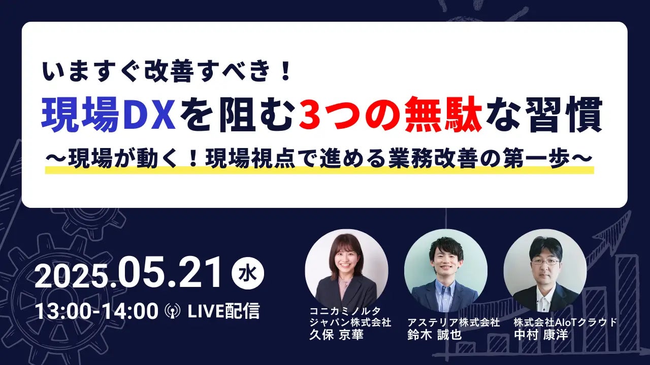 「いますぐ改善すべき、現場DXを阻む3つの無駄な習慣」【5月21日(水)開催】 コニカミノルタジャパン、アステリア、AIoTクラウド 3社共催セミナー