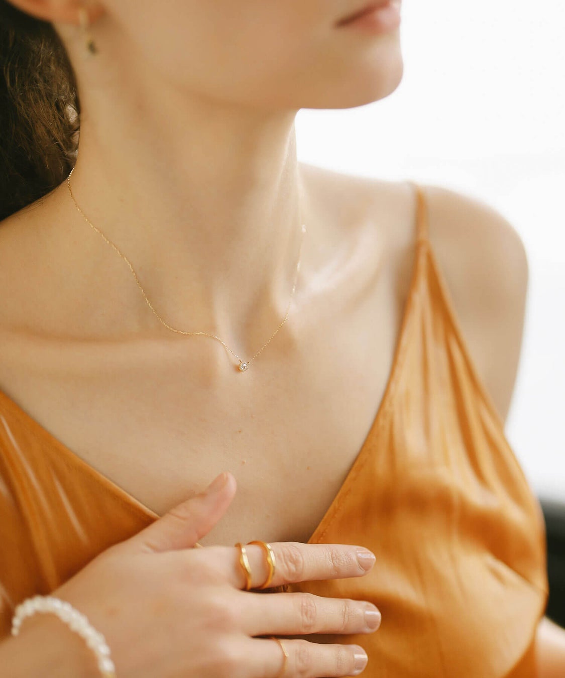 上品にキラキラ煌めく一粒ダイヤネックレス。