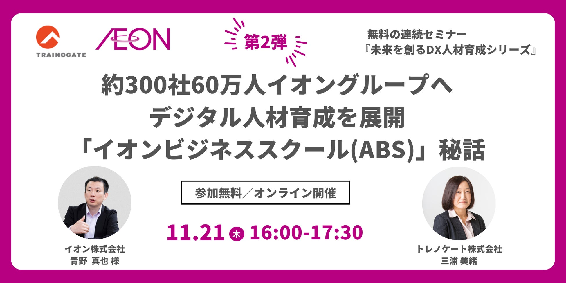 【11/21(木)開催】イオン株式会社様登壇!トレノケート主催の無料連続オンラインセミナー『未来を創るDX人材育成シリーズ』【第2弾】