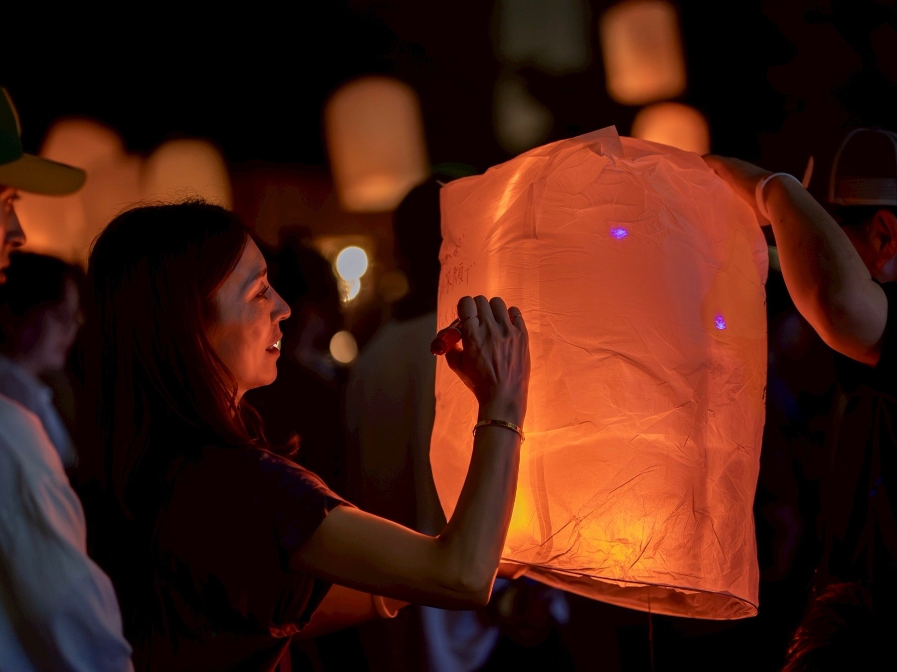 夜空に浮かぶランタンが、静岡の冬の空をやさしく照らします。