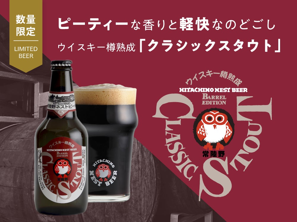 ウイスキー樽で熟成させた常陸野ネストビール「クラシックスタウト」9月中旬に数量限定発売