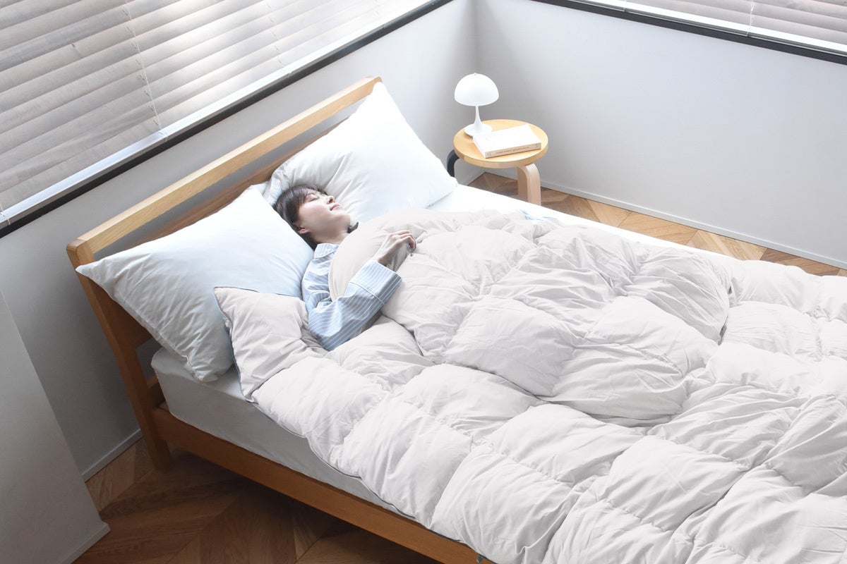 毛布と布団を重ね掛けしていると、寝ている間に蹴飛ばして毛布だけベッドの下に落ちていた…なんて経験のある方にもおすすめ。
