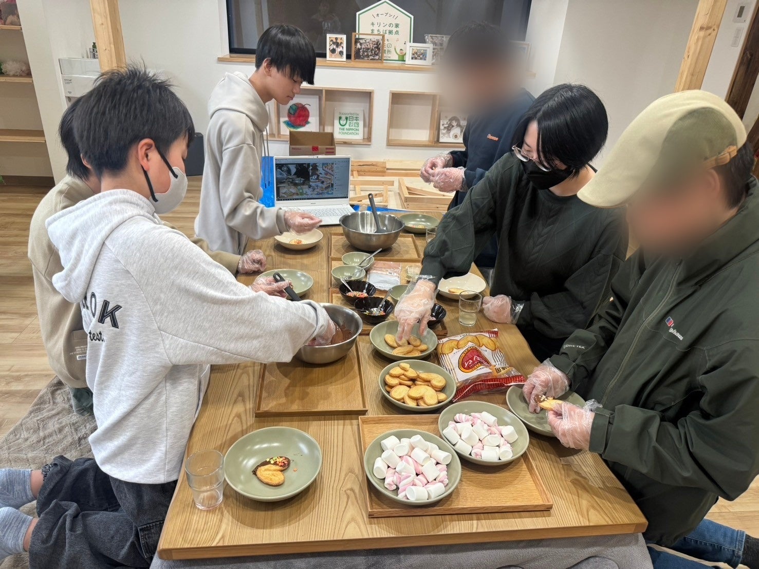 2回目となる今回のリアルイベントでは、保護者も一緒にジェンガ等のゲームを楽しんだり、オンライン参加の子ども達も画面ごしにつながる中、みんなでバレンタインのデザート作りを楽しみました。