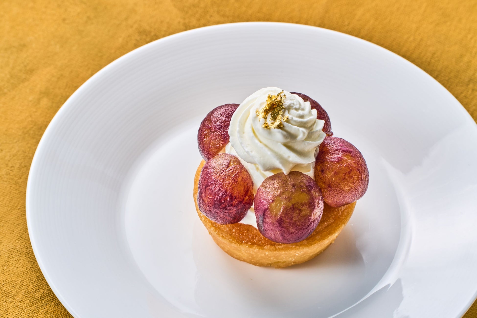 サクッと軽いタルト生地にカスタードとクリームシャンティをとじ込め、ぶどうの王様である巨峰をトッピング。たっぷりの果汁に、芳醇な香りと酸味、甘みが口いっぱいに広がります。