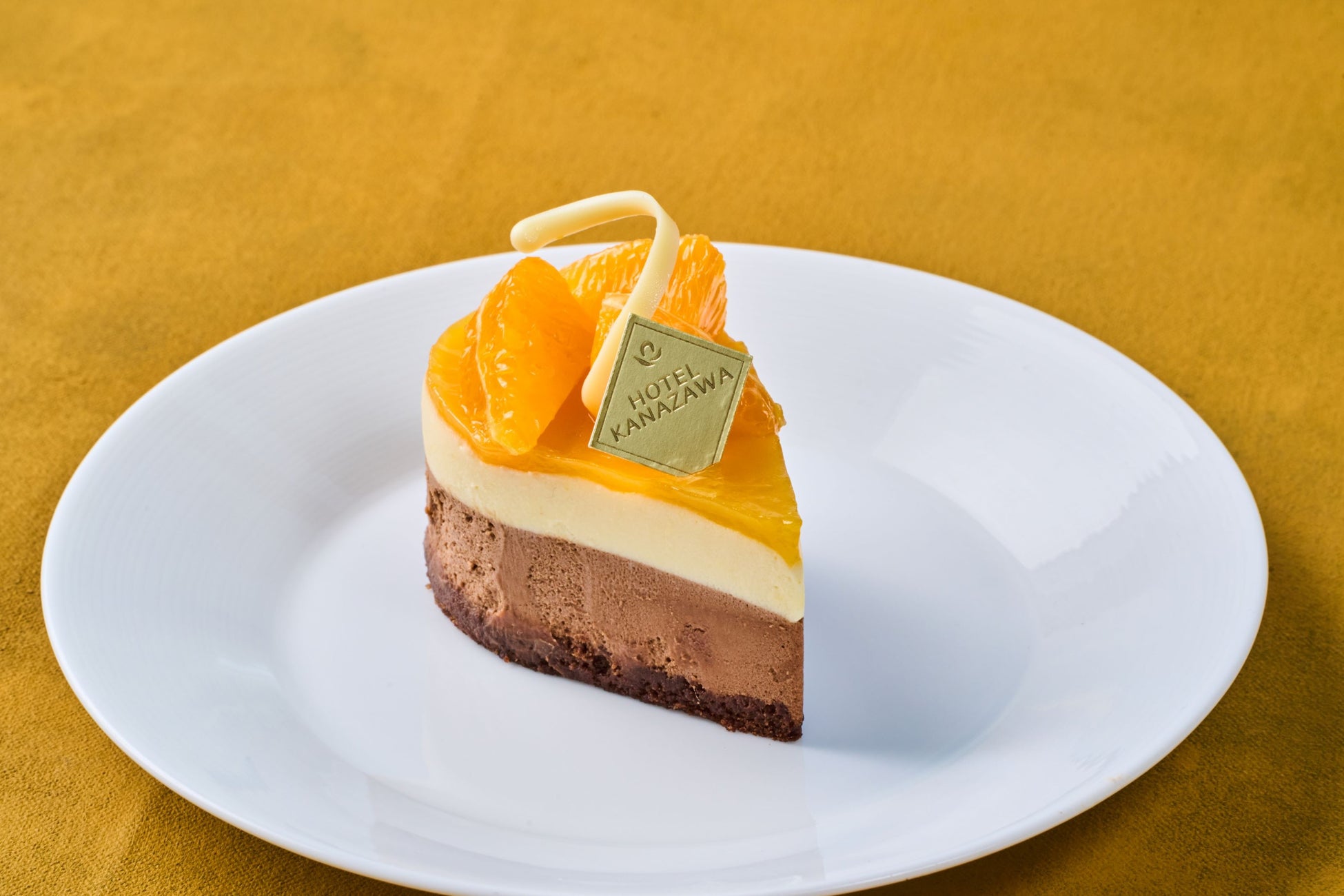 チョコレートのスポンジの上にチョコレートのムースとオレンジのムースを丁寧に重ね、オレンジのジュレで仕上げました。それぞれの個性を味わったあと、ぜひすべての層を一口に頬張って絶妙なマリアージュをご堪能ください。