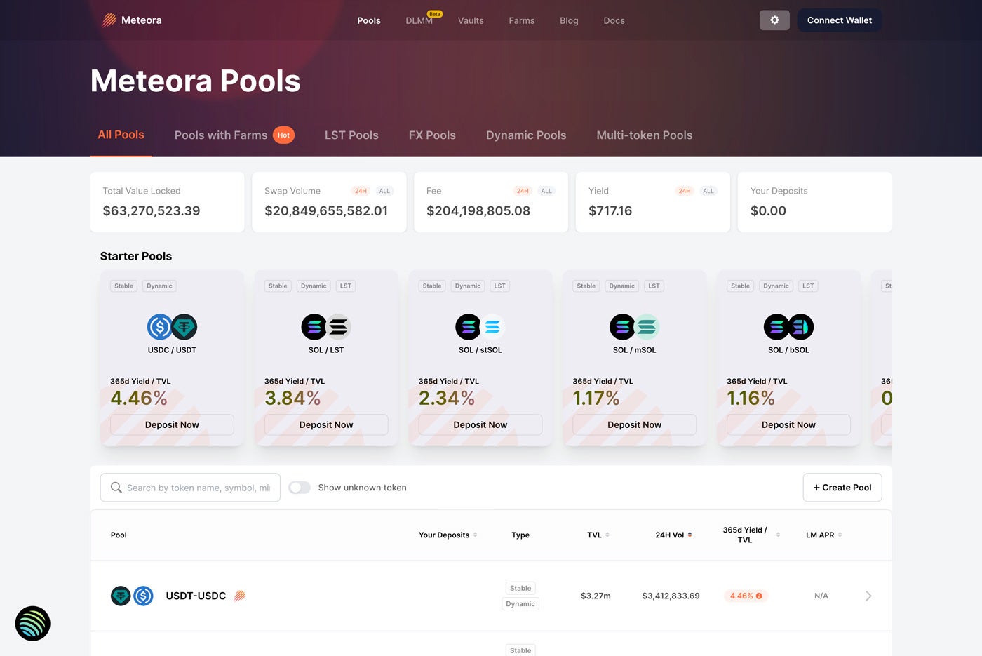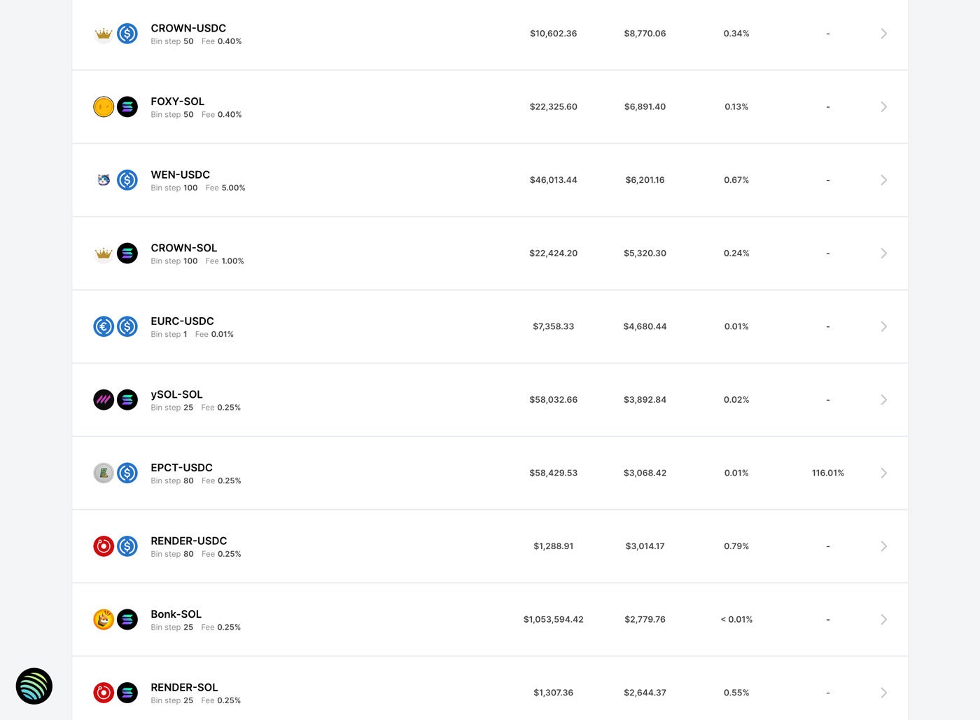 Meteora DLMM Pools: https://app.meteora.ag/dlmm