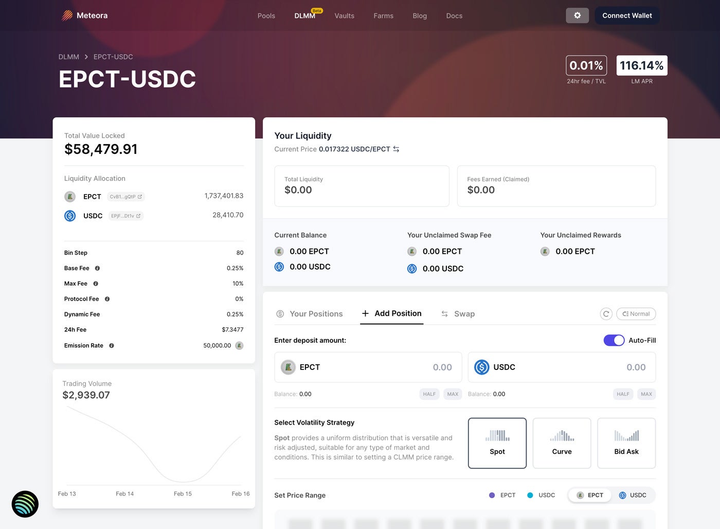 Meteora 流動性プール $EPCT-$USDC : https://app.meteora.ag/dlmm/Bvuxt4bprNYt5bgGXy2MKi5YTbakj6CJvwpfYXWePqVW