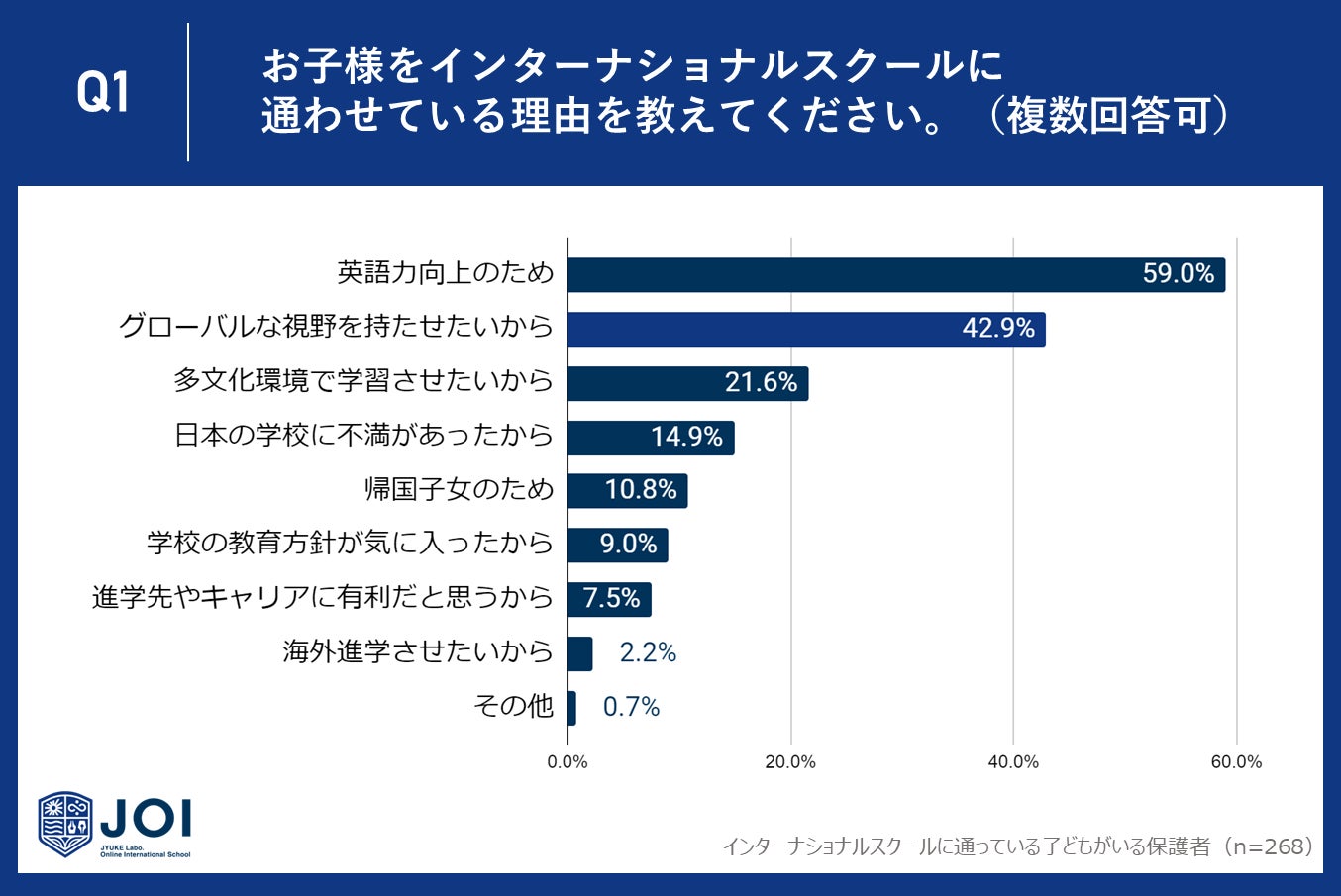 59%の保護者が英語力向上を求めてインターナショナルスクールを選ぶ