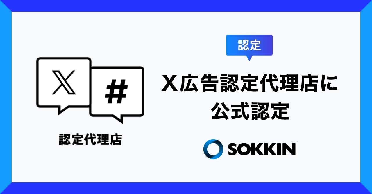 株式会社SOKKIN(本社:東京都新宿区、代表取締役:本間 亮平)は、X広告の公式認定代理店として認定されましたことをお知らせいたします。