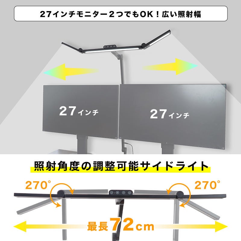 モニター2台でも広々照らせるクランプ式3面LEDライト