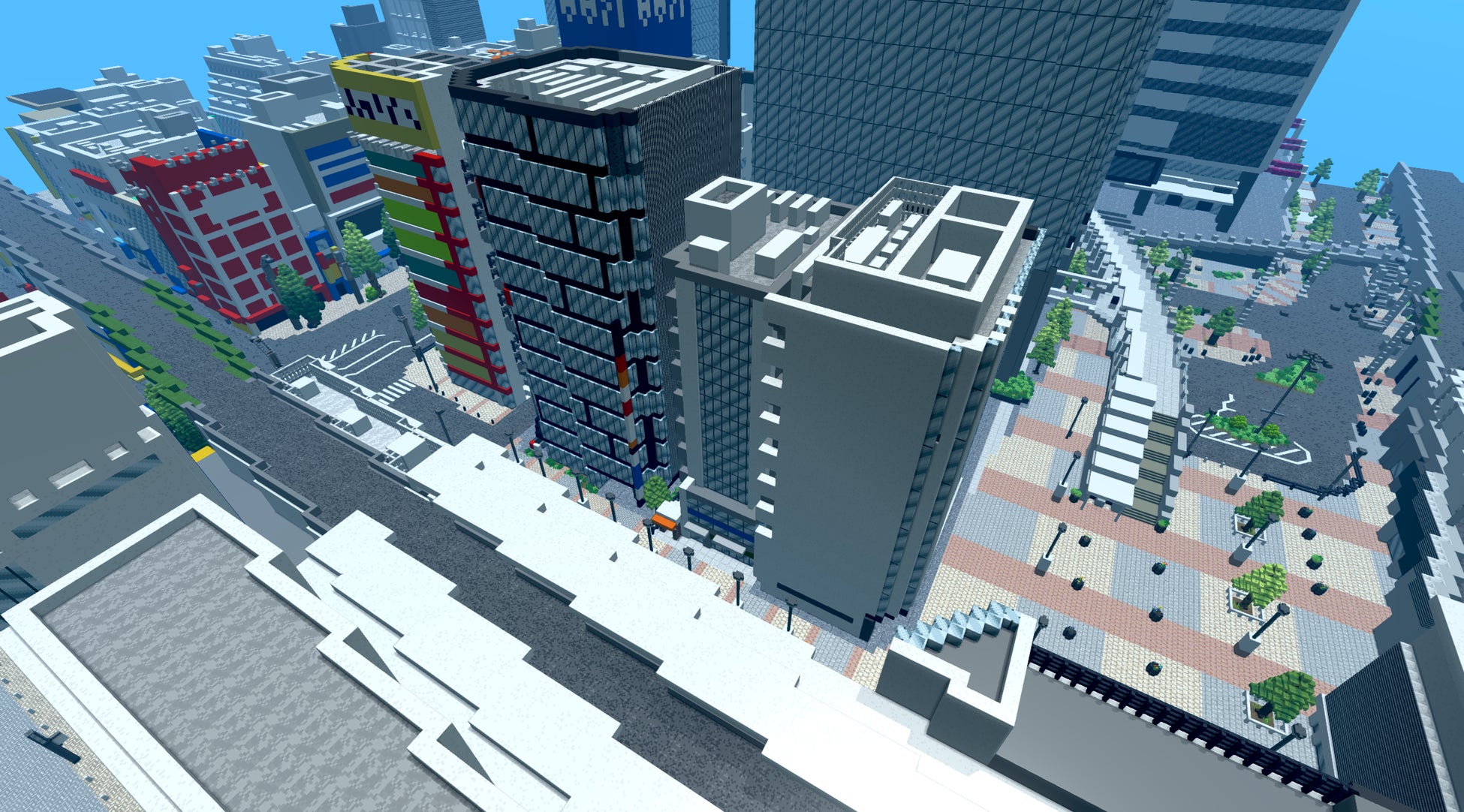 ◎PLATEAUが提供する秋葉原の街並みをボクセルでゲーム内に再現!